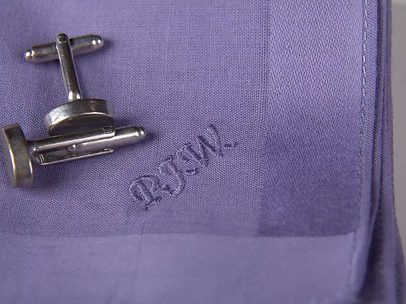 Monograms can be added to dress shirts, towels, bathrobes, napkins, handkerchiefs, or bags.